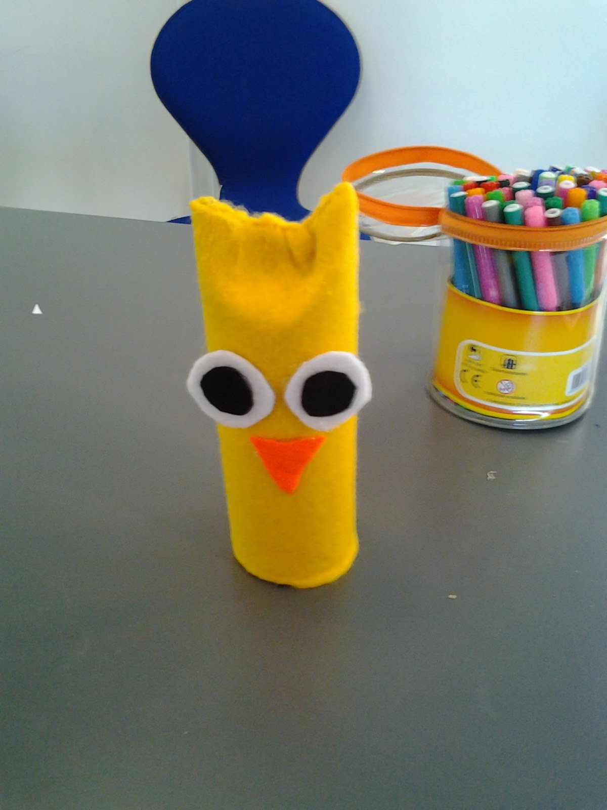 Den med mange farver blev kaldt en disco ugle. Plakat rør beklædt med filt og gavebånd som bælte.